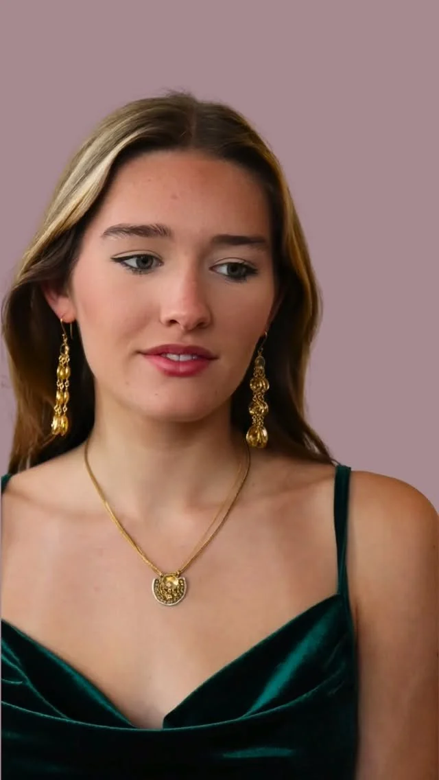 Each piece is a one-off, with a story, an eclectic mix of inspirations and visual language inspired by Sally’s travels to remote places and the cultures she has encountered and fallen in love with along the way. Exotic rocks and precious stones set in gold, antique talismans from around the world adorn hand made chains, creating jewellery that feels as mythical and magical as it is beautiful.