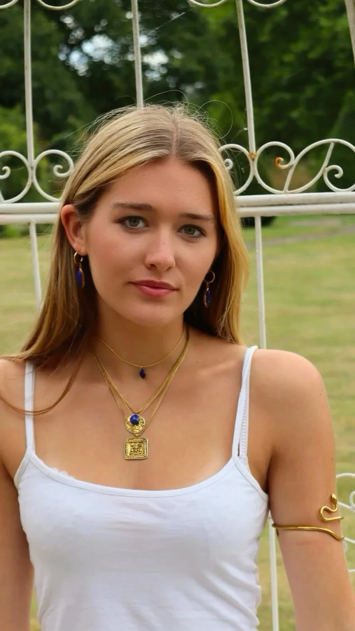 Each piece is a one-off, with a story, an eclectic mix of inspirations and visual language inspired by Sally’s travels to remote places and the cultures she has encountered and fallen in love with along the way. Exotic rocks and precious stones set in gold, antique talismans from around the world adorn hand made chains, creating jewellery that feels as mythical and magical as it is beautiful.