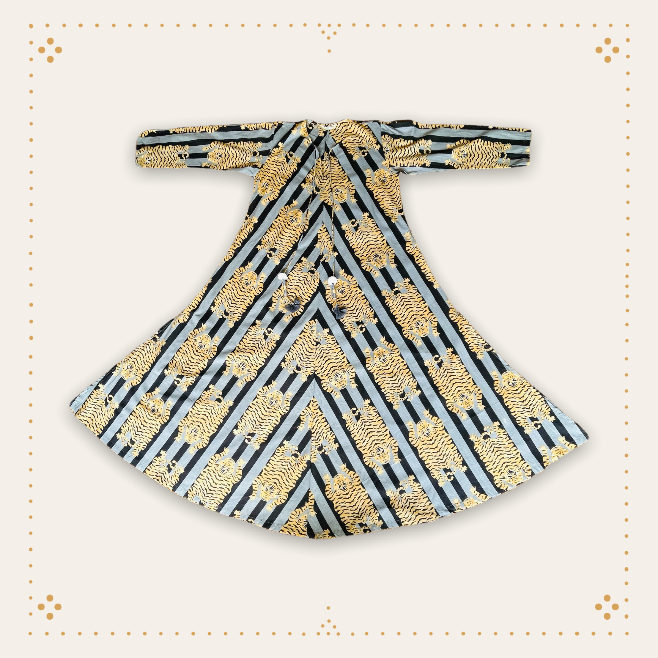 Long, loose fitting with a swishy, swirly skirt. Ideal for keeping cool on hot summer days. Designed by Sally, using her fabulous Tyger Tyger print. Available in three sizes.