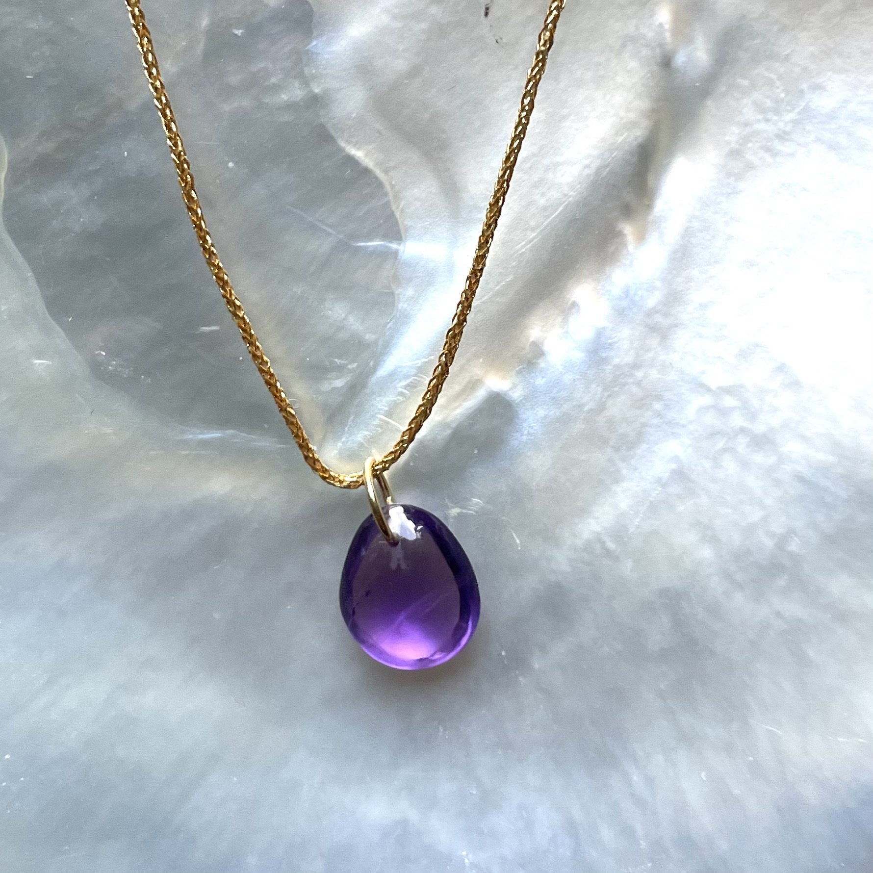 Exquisite simplicity, Sally’s delicate tumbled birthstones are set on a simple gold cord making the ideal, affordable gift.