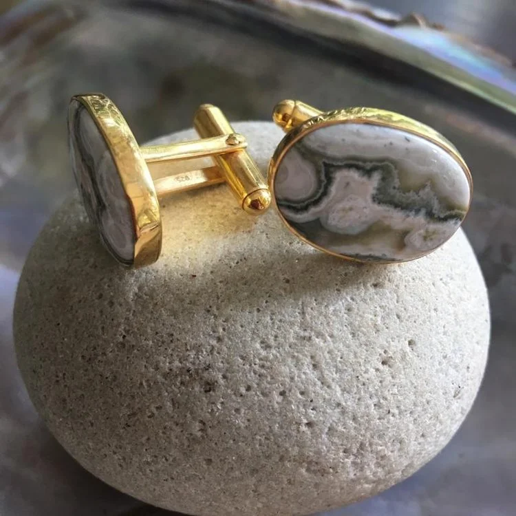 Our Ocean Jasper cufflinks are totally unique and no pair will be the same. Ocean Jasper is a multi-coloured stone from Madagascar, typically with spherical patterning. It is reputed to have healing properties.