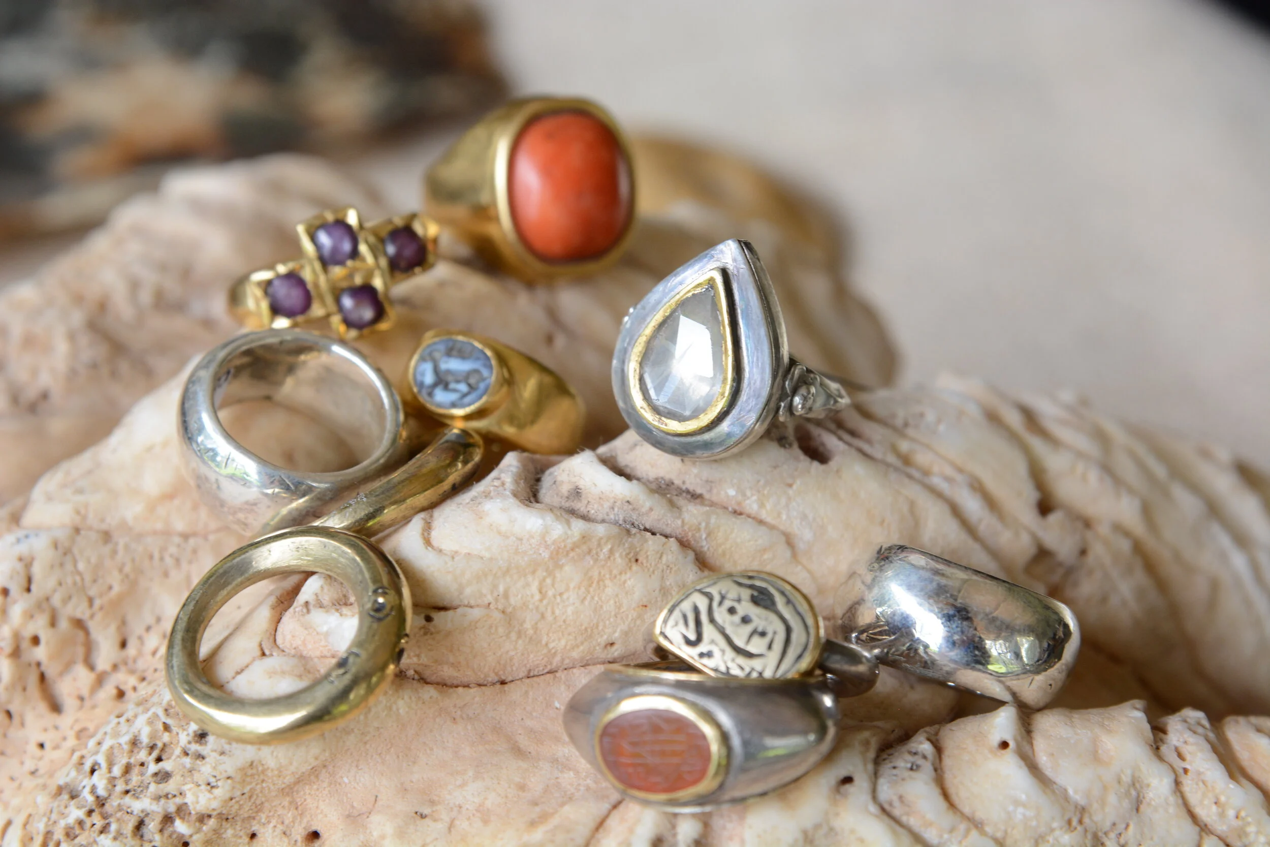 Each piece is a one-off, with a story, an eclectic mix of inspirations and visual language inspired by Sally’s travels to remote places and the cultures she has encountered and fallen in love with along the way. Exotic rocks and precious stones set in gold, antique talismans from around the world adorn hand made chains, crating jewellery that feels as mythical and magical as it is beautiful.